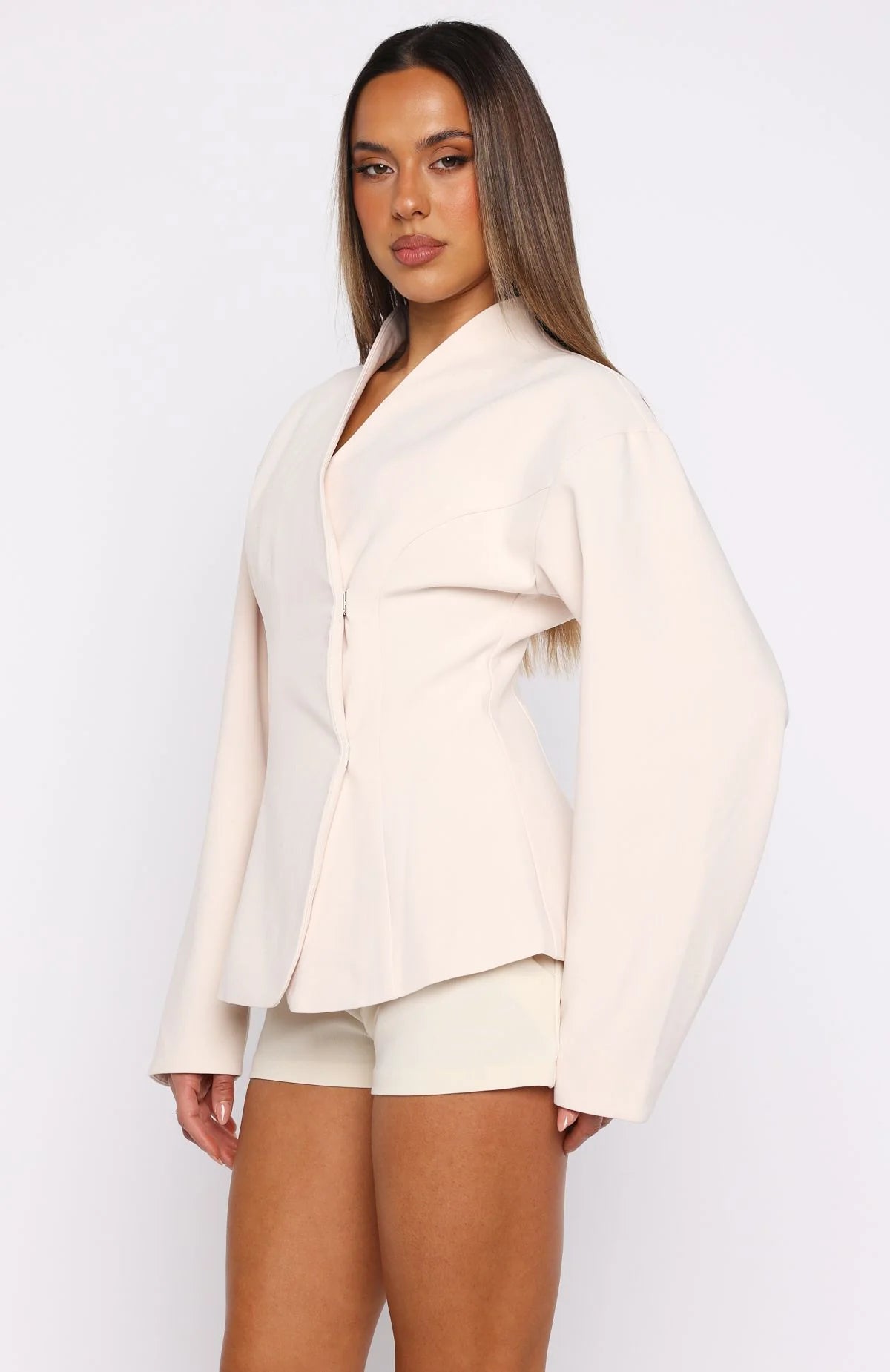 Own the room in our A Day To Remember Jacket in Bone! With a subtle V-neckline, relaxed slouched shoulders and long sleeves, it offers a relaxed yet structured silhouette. Finished with a discreet hook-and-bar front closure, a chic back hem split and full lining, it’s the perfect balance of ease and polished style. Pair with white jeans and a mini shoulder bag for a chic look!