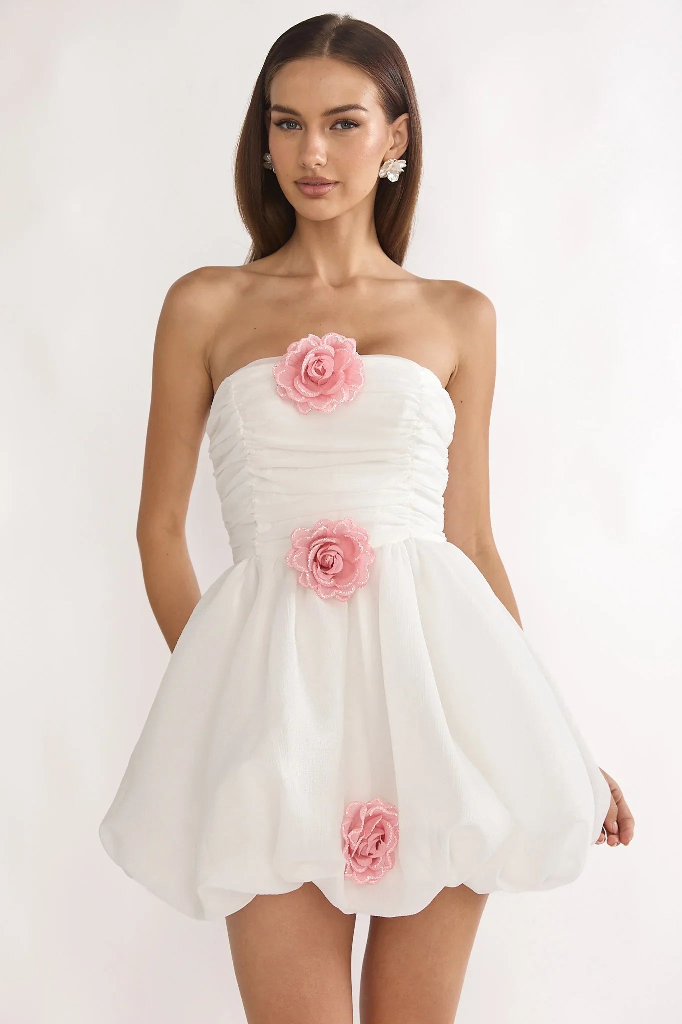 Make your grand entrance in our pretty Cassandrae mini dress. It features a strapless design and removable rosette decorations. It's perfect for a girls' night out or birthday party! Team it with strappy heels and a purse for an unforgettable look.