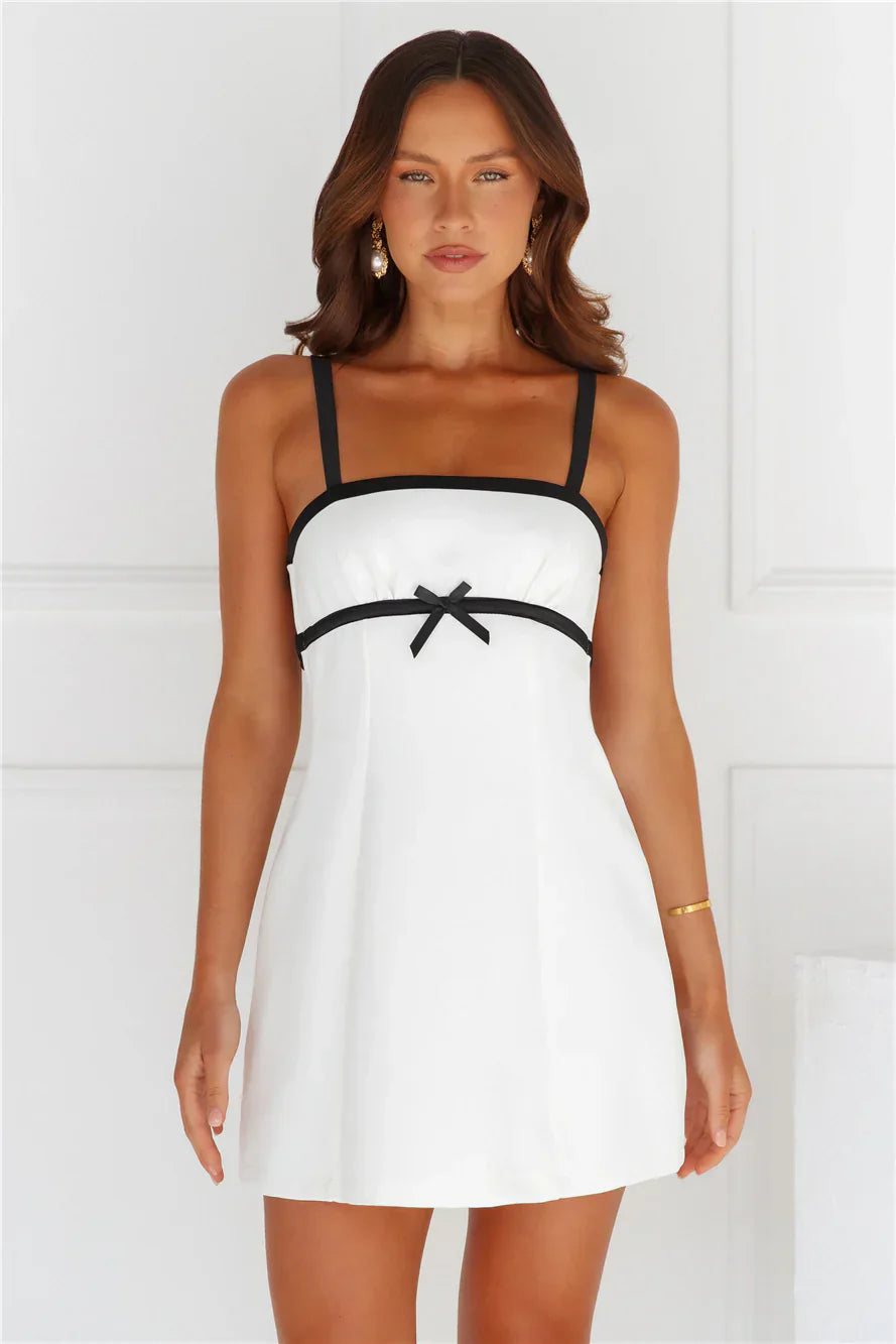 Get the look you've been dreaming about with this coquette-inspired mini. The Endless Trends Mini Dress features an A-line silhouette and a black contrast trim including a dainty bow to the front. Style with heels and curls!