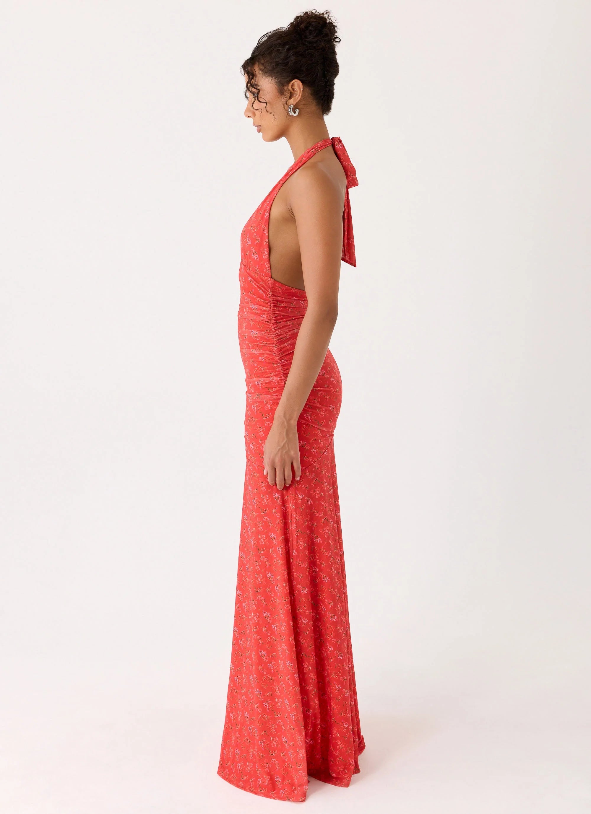 The Esme Maxi Dress is made for sun‑soaked days that flow into balmy evenings. Featuring a plunge neckline with halterneck design and an asymmetric drop waist skirt, this maxi‑length silhouette skims the body in effortless style with an exclusive print for editorial flair.