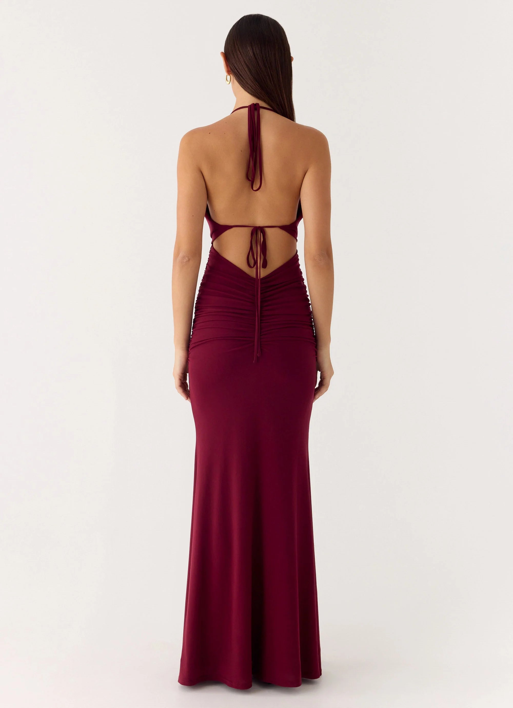 The Eyes Closed Maxi Dress is made for evenings that glide effortlessly from golden hour to after-dark moments. Featuring a low halter neckline with adjustable back straps and subtle back ruching, this maxi-length style skims the body in soft mesh with a fully lined finish. Stretch jersey ensures comfort while maintaining a flattering, editorial-ready silhouette.