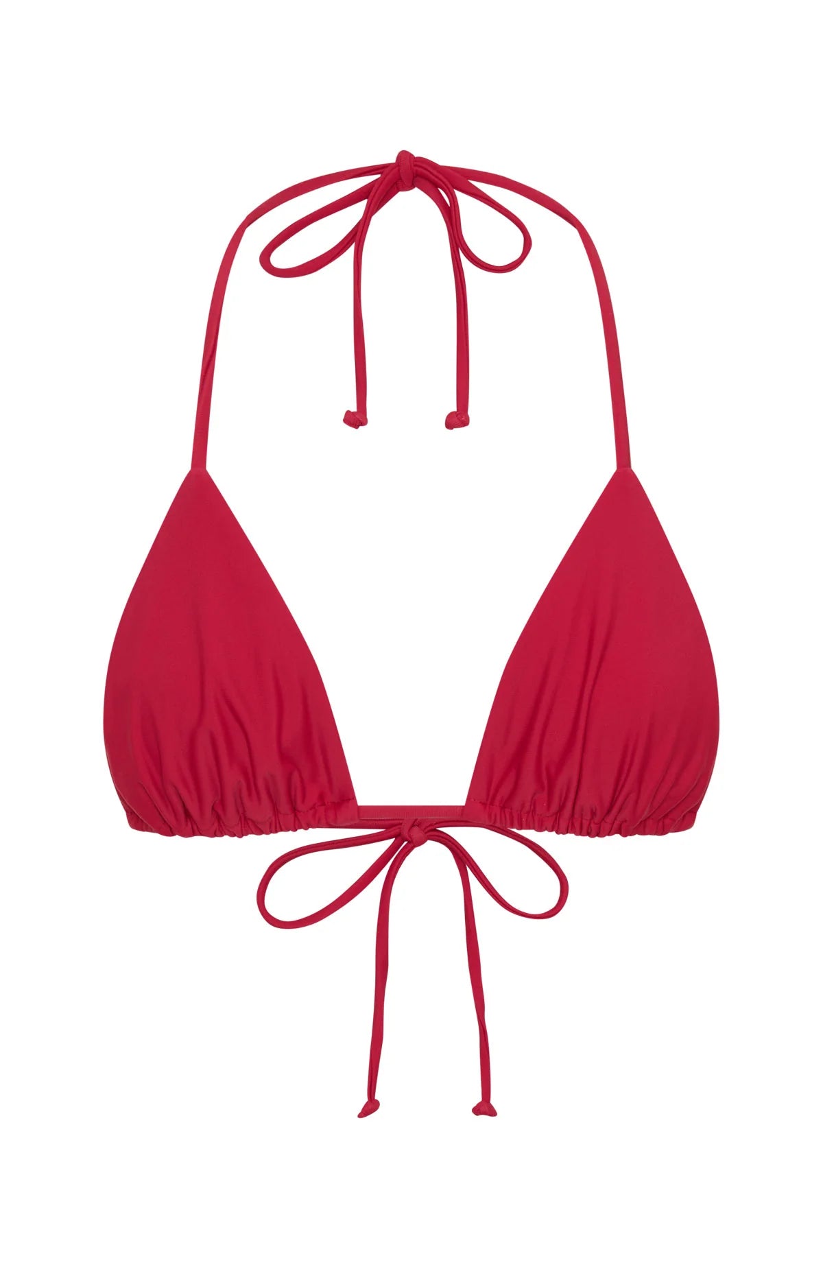Turn up the summer heat in the Golden Hour Bikini Top in Cherry Red. This sleek triangle top features a halter-style neckline with thin elasticated straps, adjustable back strap, and removable padding for tailored comfort. Pair it effortlessly with our matching Cherry Red bottoms for a perfectly on‑trend poolside look.