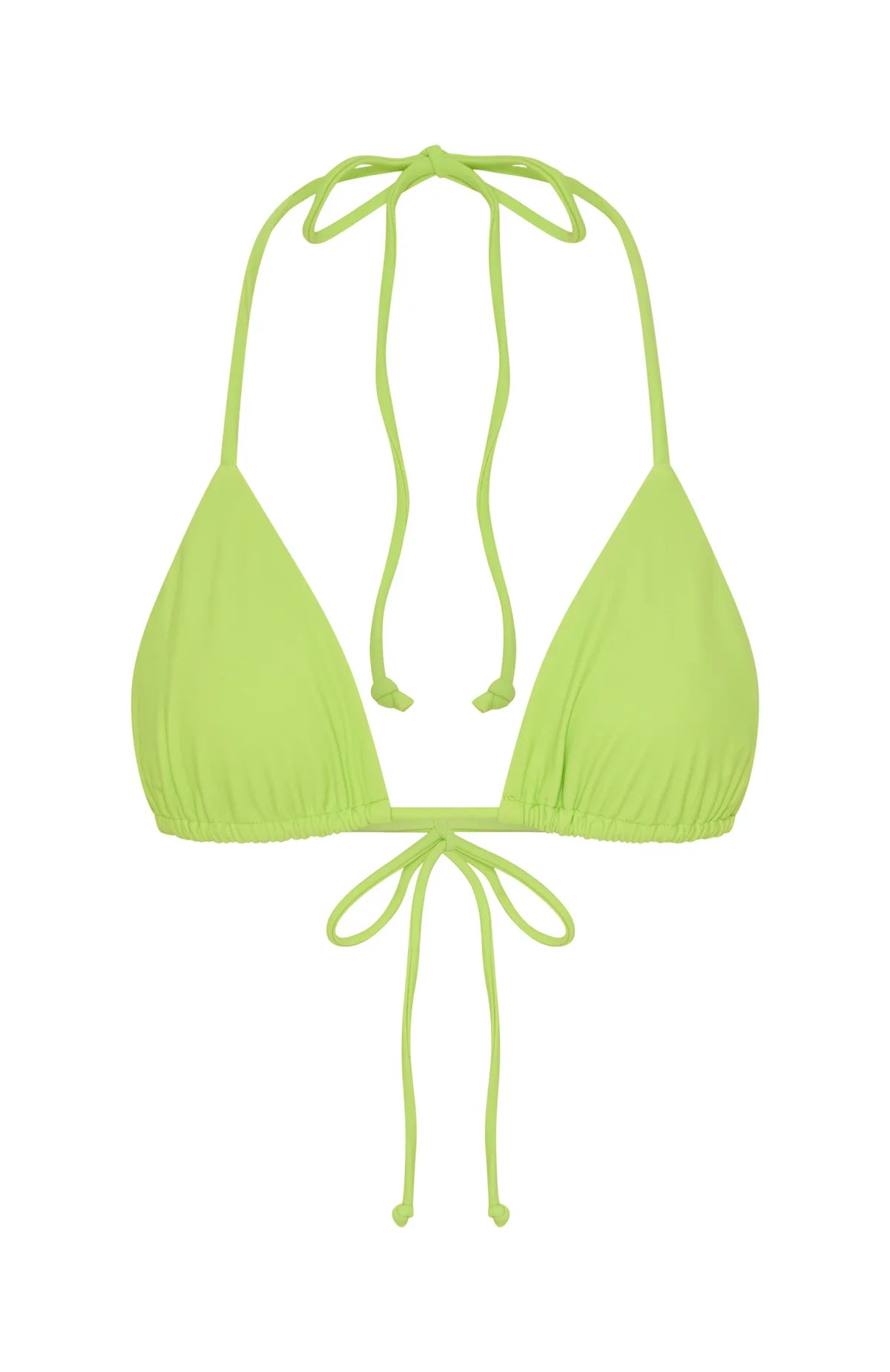 The Golden Hour Bikini Top in Lime is an essential for sun drenched days. This triangle bikini top is a halter neck style with thin elasticated straps and removable padding. To compliment the top, pair with one of our Lime Bikini Bottoms for the perfect poolside look!