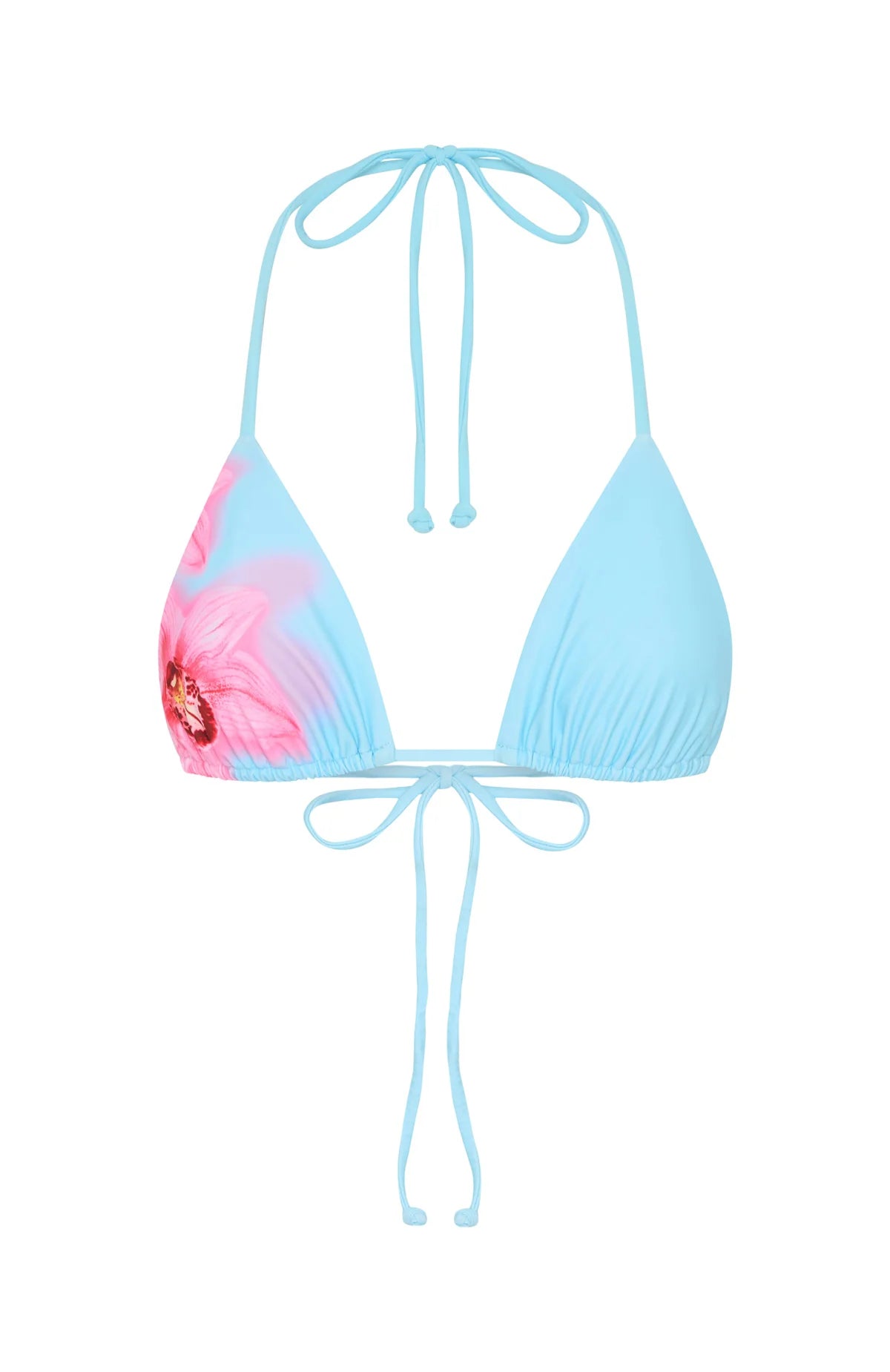 The Golden Hour Bikini Top in Malibu Breeze is an essential for sun drenched days. This triangle bikini top is a halter neck style with thin elasticated straps and removable padding. To compliment the top, pair with one of our Malibu Breeze Bottoms for the perfect poolside look!