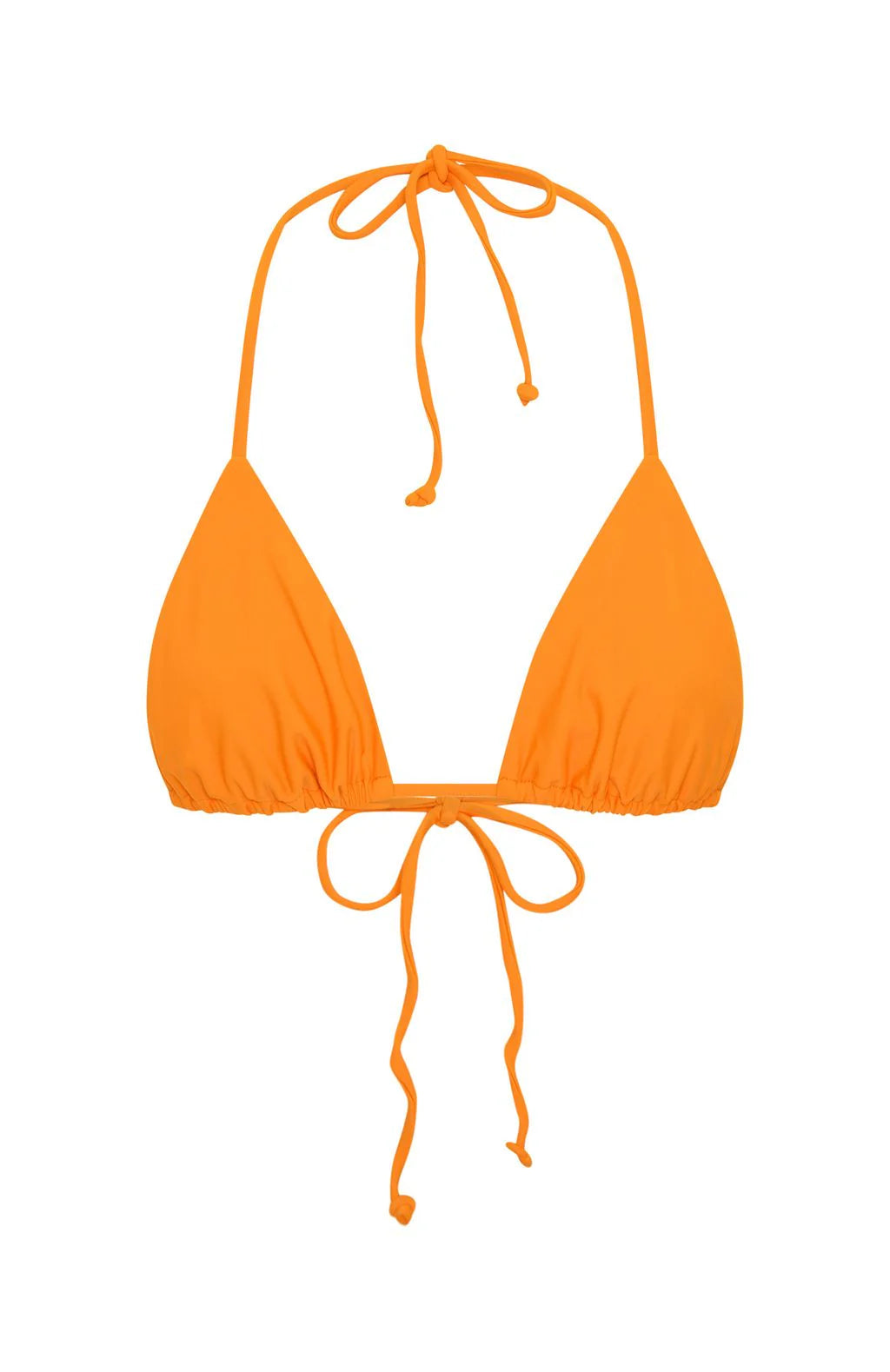 Make a splash with the Golden Hour Bikini Top in Tangerine! This triangle bikini top is a halter neck style with thin elasticated straps and removable padding. To compliment this bikini top pair with one of our matching Bottoms in Tangerine.