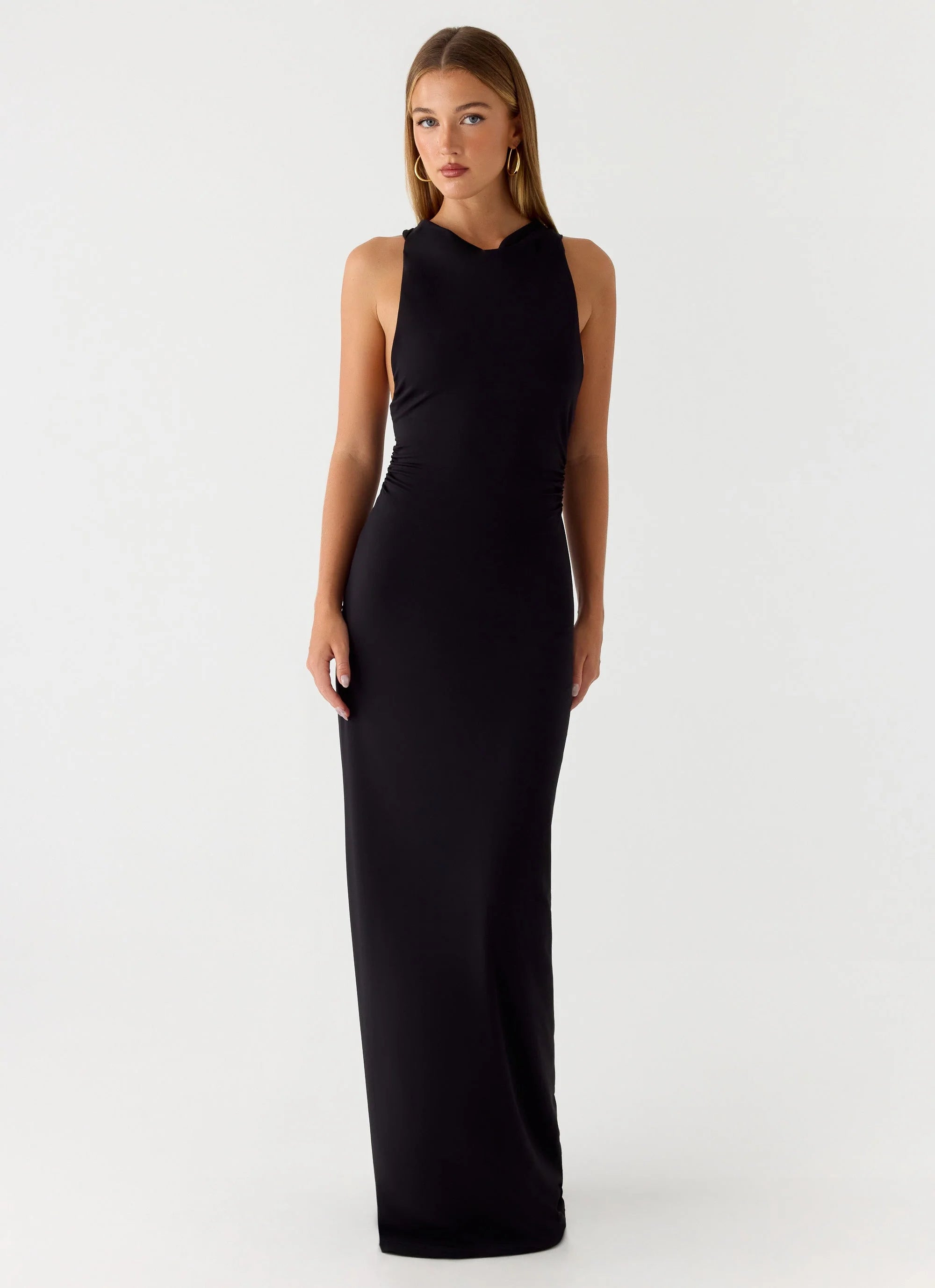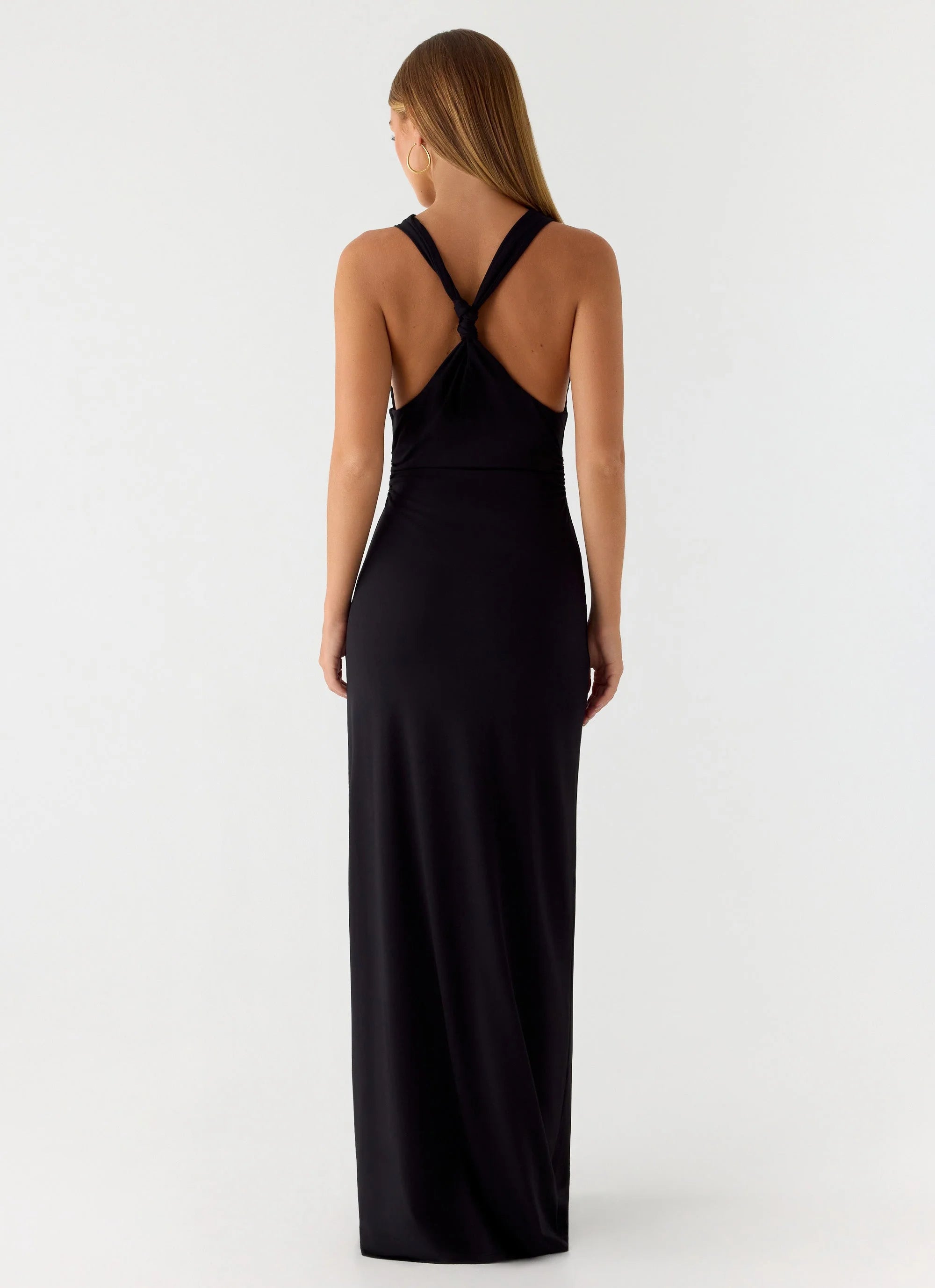 The Hidden Agenda Maxi Dress is crafted for elevated, modern evenings with a sleek, flowing silhouette. Featuring a high neckline and knot-back detailing with gathered waist, this jersey dress skims the body for a refined, statement-making look. Soft, drapey, and effortlessly chic, it’s designed to move with ease from day to night.