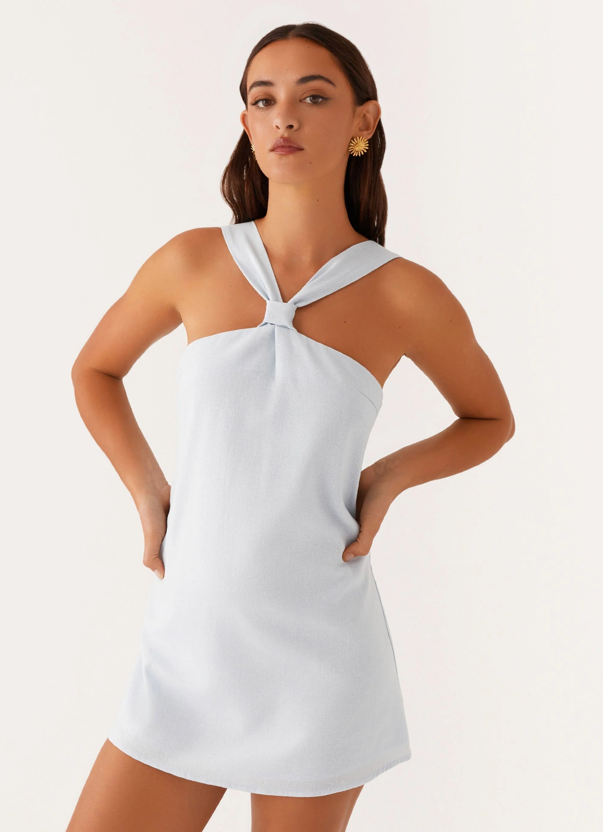 The Keira Linen Mini Dress is a stunning choice for effortless elegance. Featuring a flattering halter neckline and a daring open back, this dress combines sophistication with a touch of allure. Fully lined for comfort, it’s perfect for sun-soaked days and warm evening adventures.