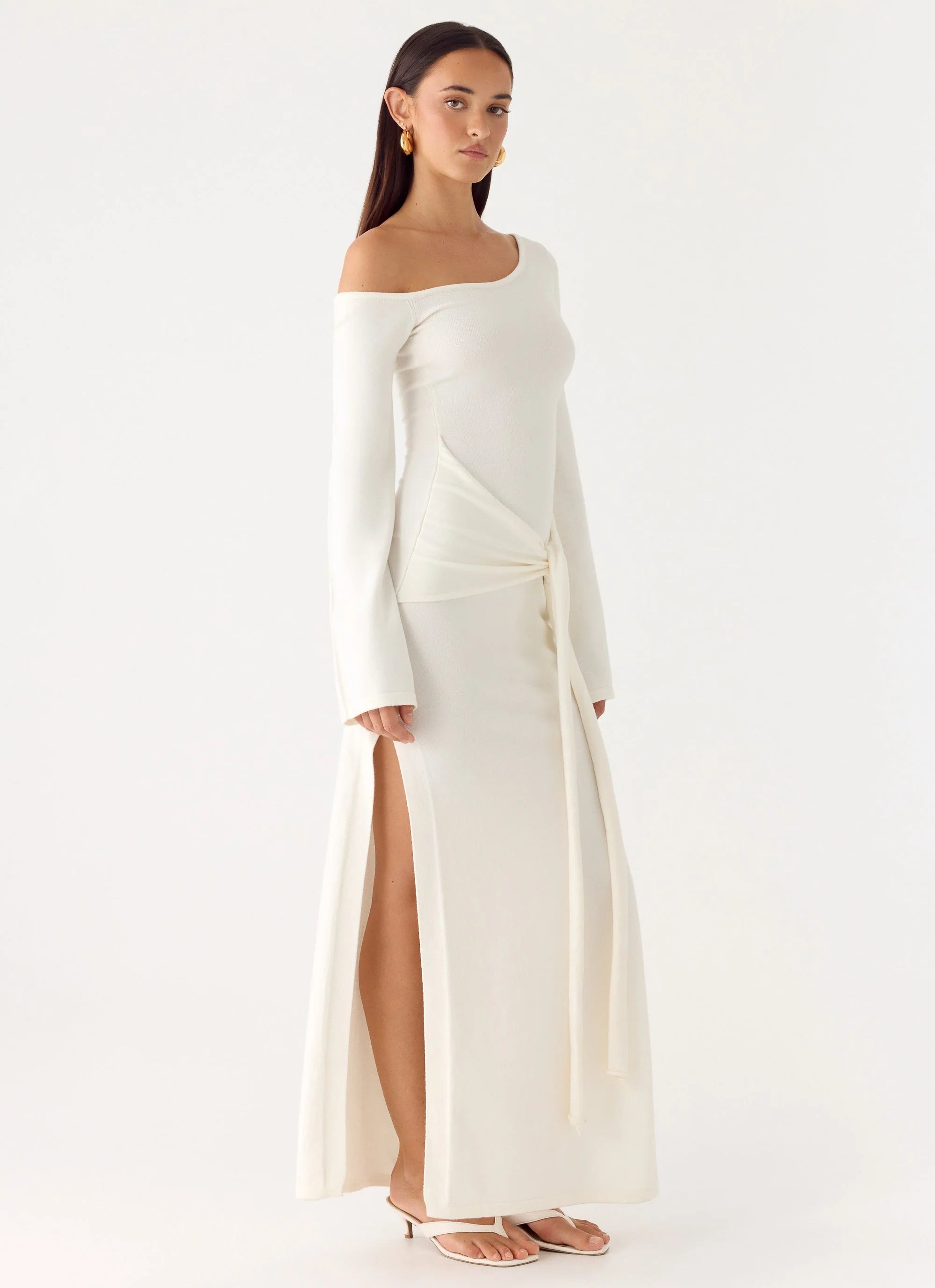 The Kova Knit Maxi Dress is crafted for bold, evening-ready moments with a sleek, body-con silhouette. Featuring an asymmetric one-shoulder neckline and a front sash, this fitted knit maxi skims the body for a confident, statement-making look. Elegant, modern, and effortlessly chic, it’s designed to turn heads from sunset to late night.