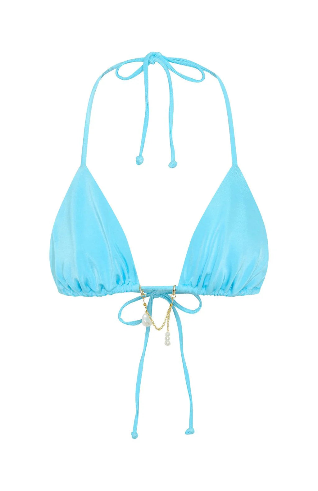 Your beach attire just got a whole lot hotter! The Lagoon Coast Bikini Top in Caribbean Pearl features a triangle bikini design, halter neck with back self ties, and centre front embellishment. We love this paired with the matching Mamaia Bottoms in Caribbean Pearl and layered gold accessories!