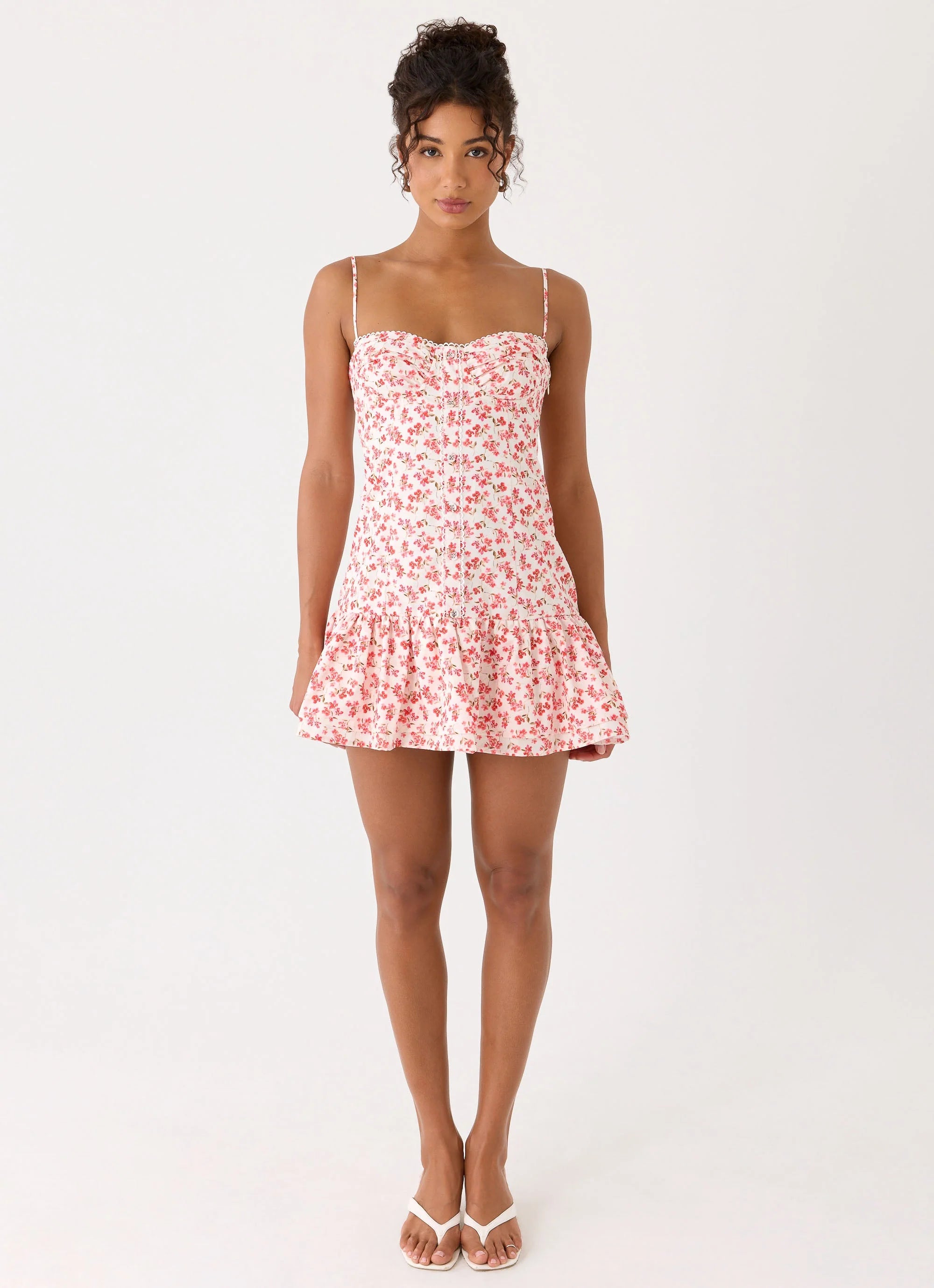 The Loulette Mini Dress is made for sun-drenched days that melt into golden-hour evenings. Featuring a drop waist skirt and underwire bust cups, this mini-length silhouette is fully lined for a smooth fit, with adjustable straps and playful non-functional button-front detailing.