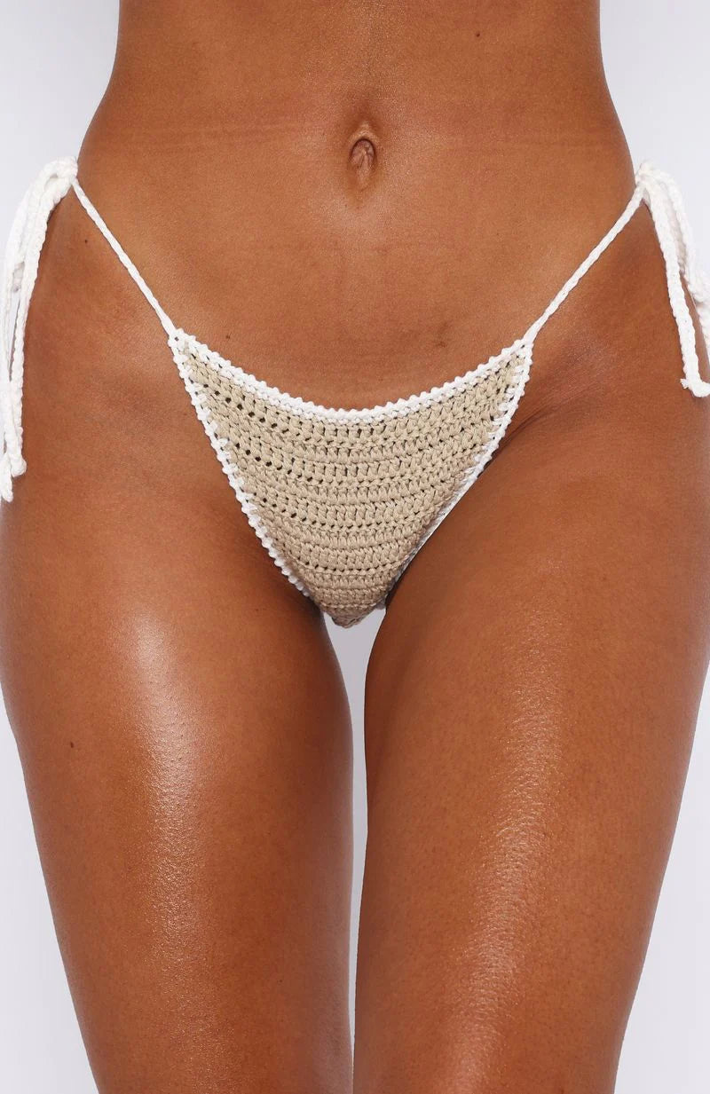 Meet the Marigold Crochet Bikini Bottoms in Sand! Features side tie straps, cheeky bottom cut, crochet design side back and White Fox gold hardware centre back. Sets are a must have this summer and with the matching Lake Como Crochet Bikini Top in Sand you will be beach day ready.