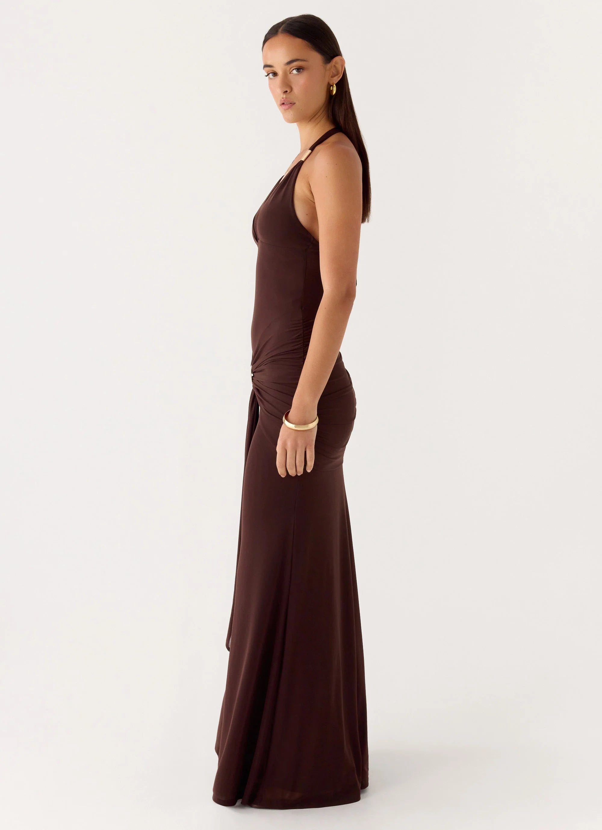 The Miyah Halter Hardware Maxi Dress is designed for elevated evenings with a sleek, sculpted finish. Crafted in stretch mesh, this body-fitting silhouette features a halter neckline with an adjustable strap and statement front sash detailing finished with gold hardware. Fully lined for comfort, it’s a striking option for after-dark events.