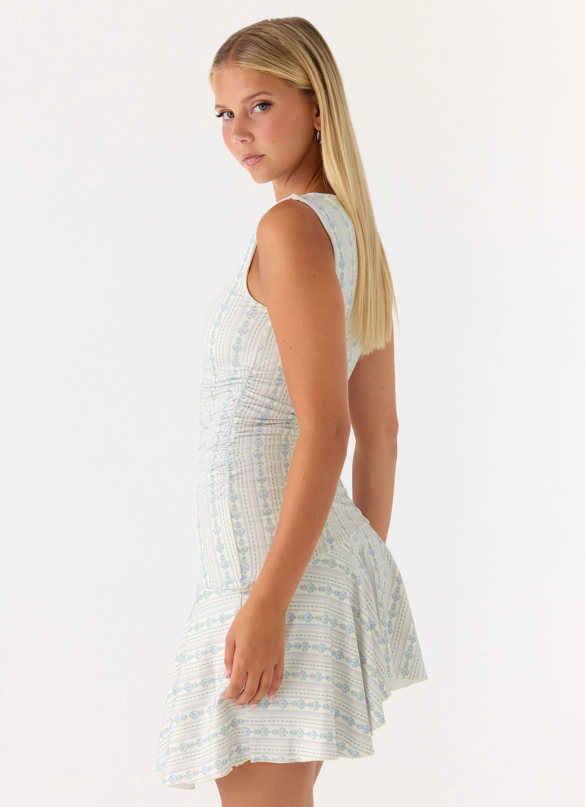 The Summer Delight Mini Dress is made for sun-drenched afternoons that flow effortlessly into evening glow. Featuring a boat neckline and a gathered waist, this mini-length silhouette drapes with an asymmetric hem for a playful, editorial finish. Crafted in soft printed jersey and fully lined, it’s made for carefree movement and summer escapism.