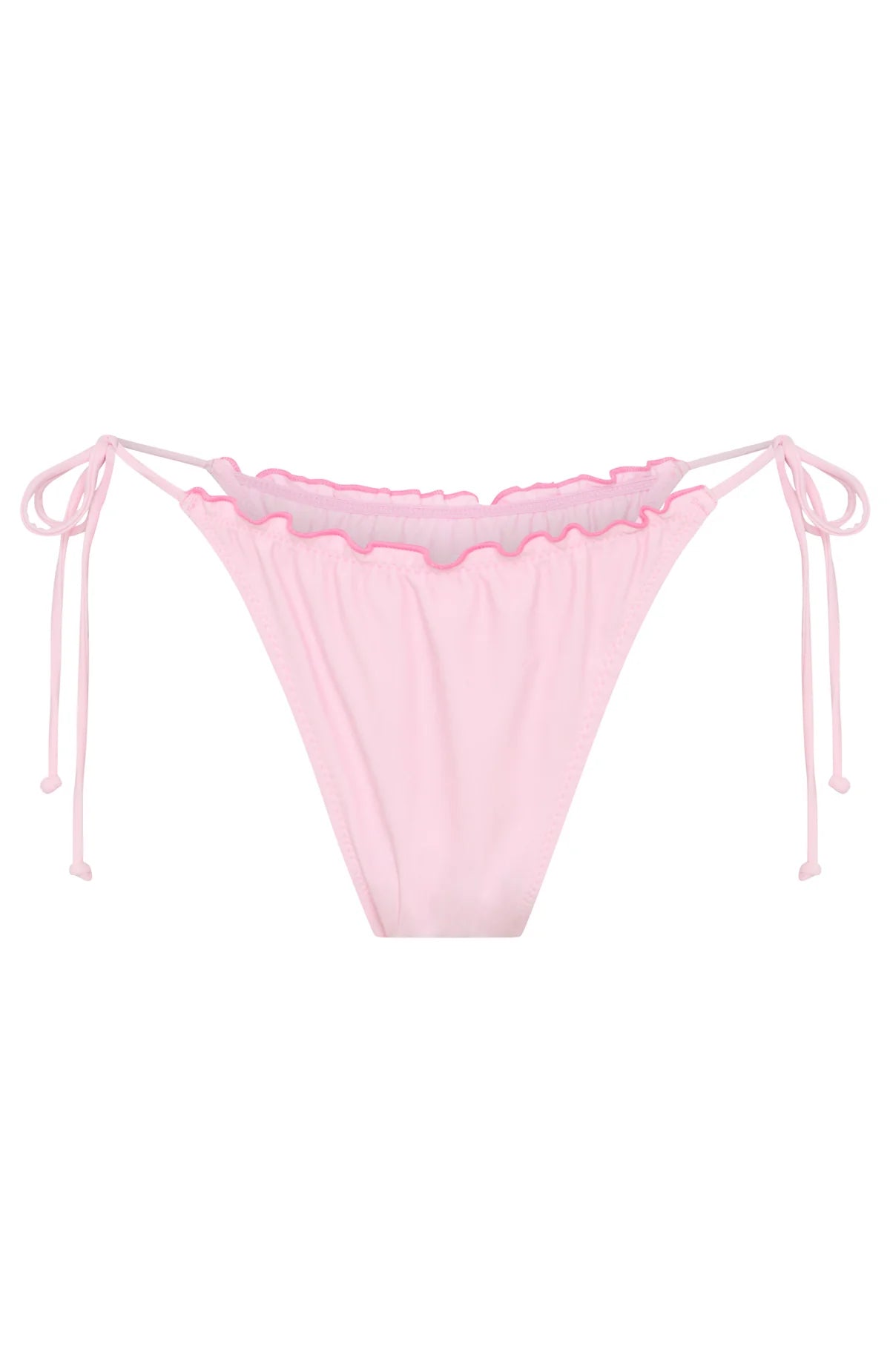 You asked and we answered with the cutest bikini your wardrobe could ask for! The Summer Vibes Bottoms Blossom features a high hip design, lined, cheeky cut design, adjustable side ties, lettuce hem detailing and gold plate at side back. Create a matching moment we adore with any of our Bikini Tops in Blossom!