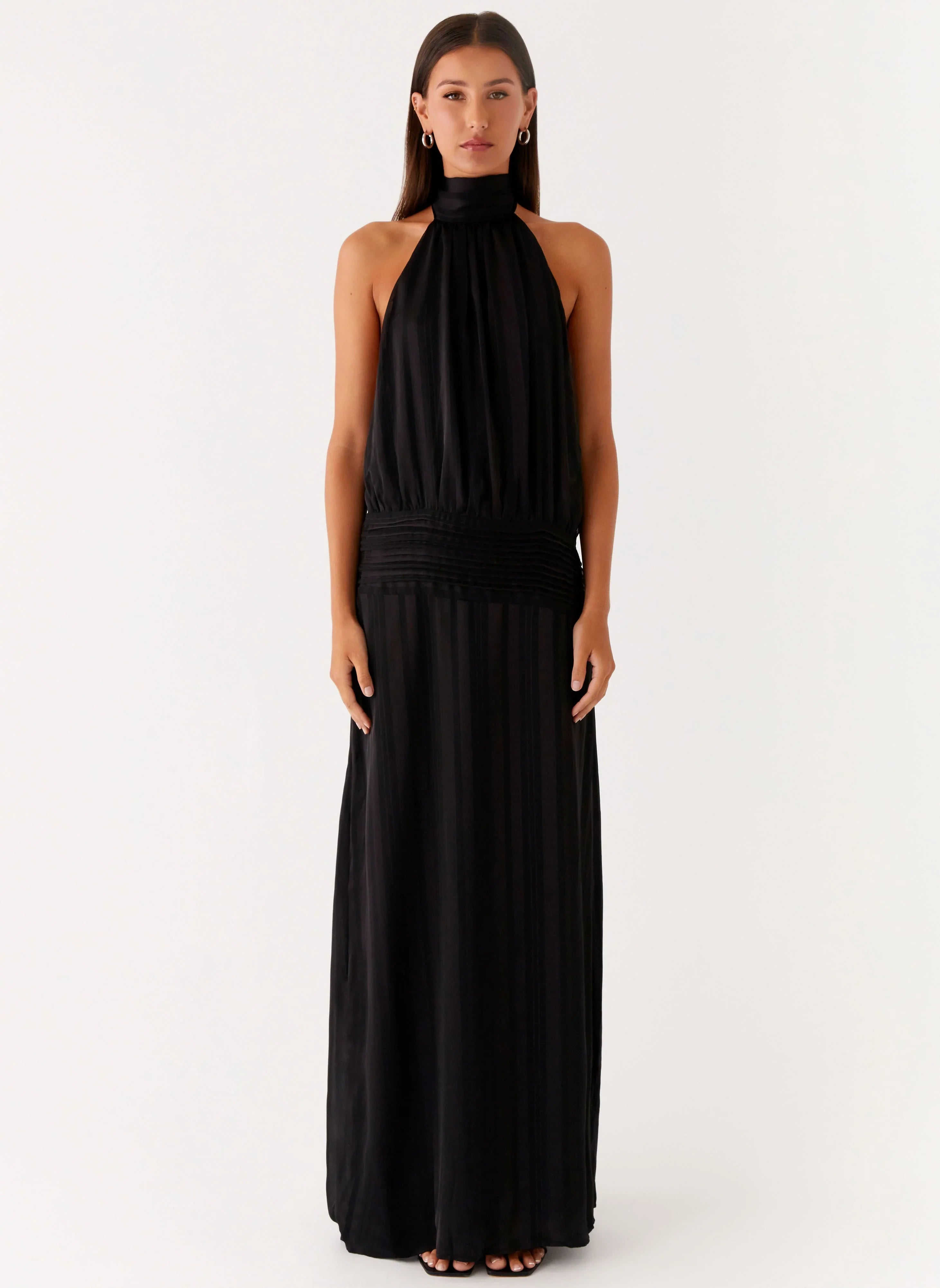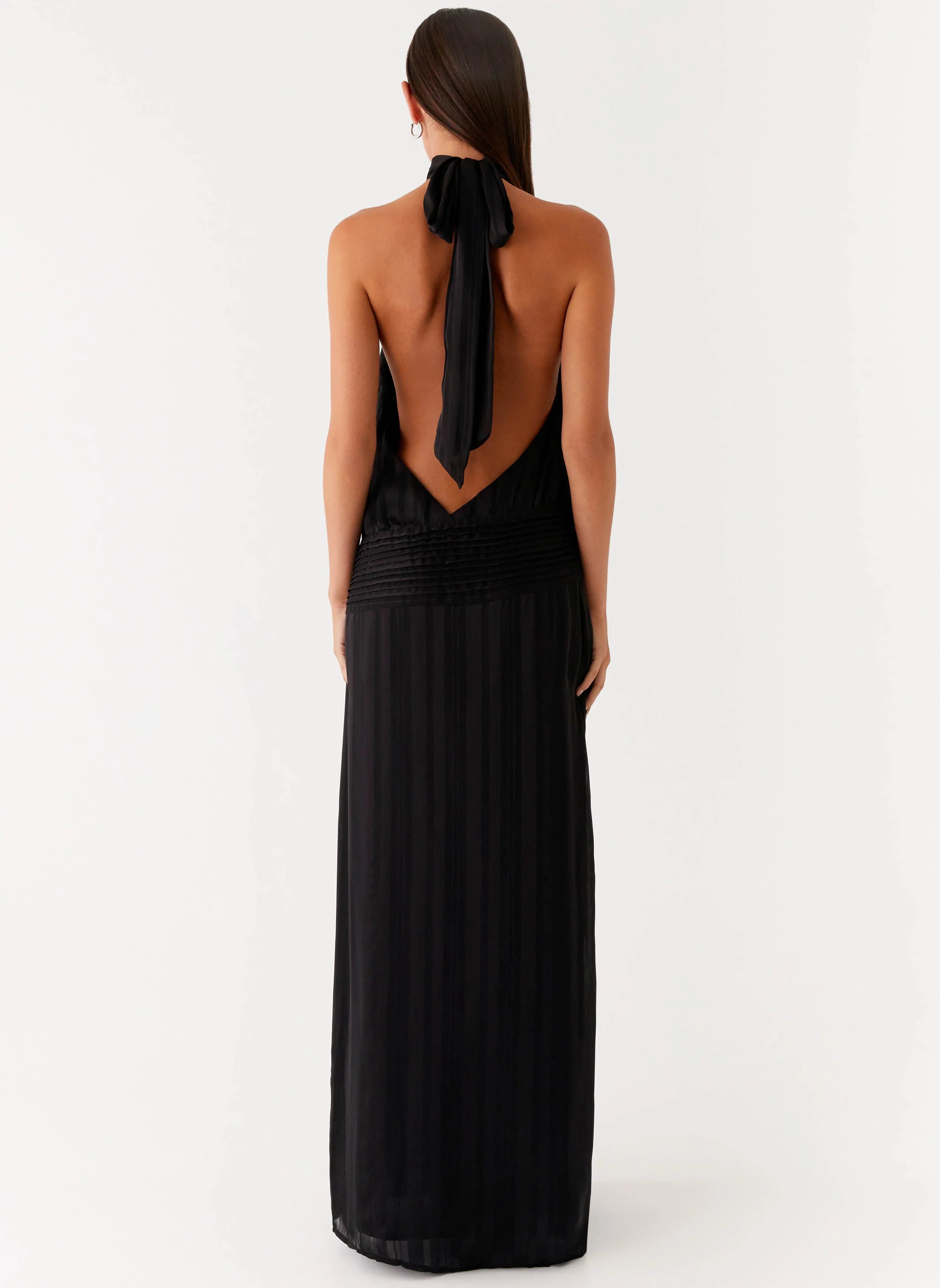 The Willow Maxi Dress is made for moonlit moments and midnight escapes. Featuring a halter neckline with a thick neck tie strap and low back, this slip-on style is crafted from textured fabric that drapes beautifully over the body. Fully lined for a seamless finish, it's the ultimate statement for sunset soirées and after-dark events.