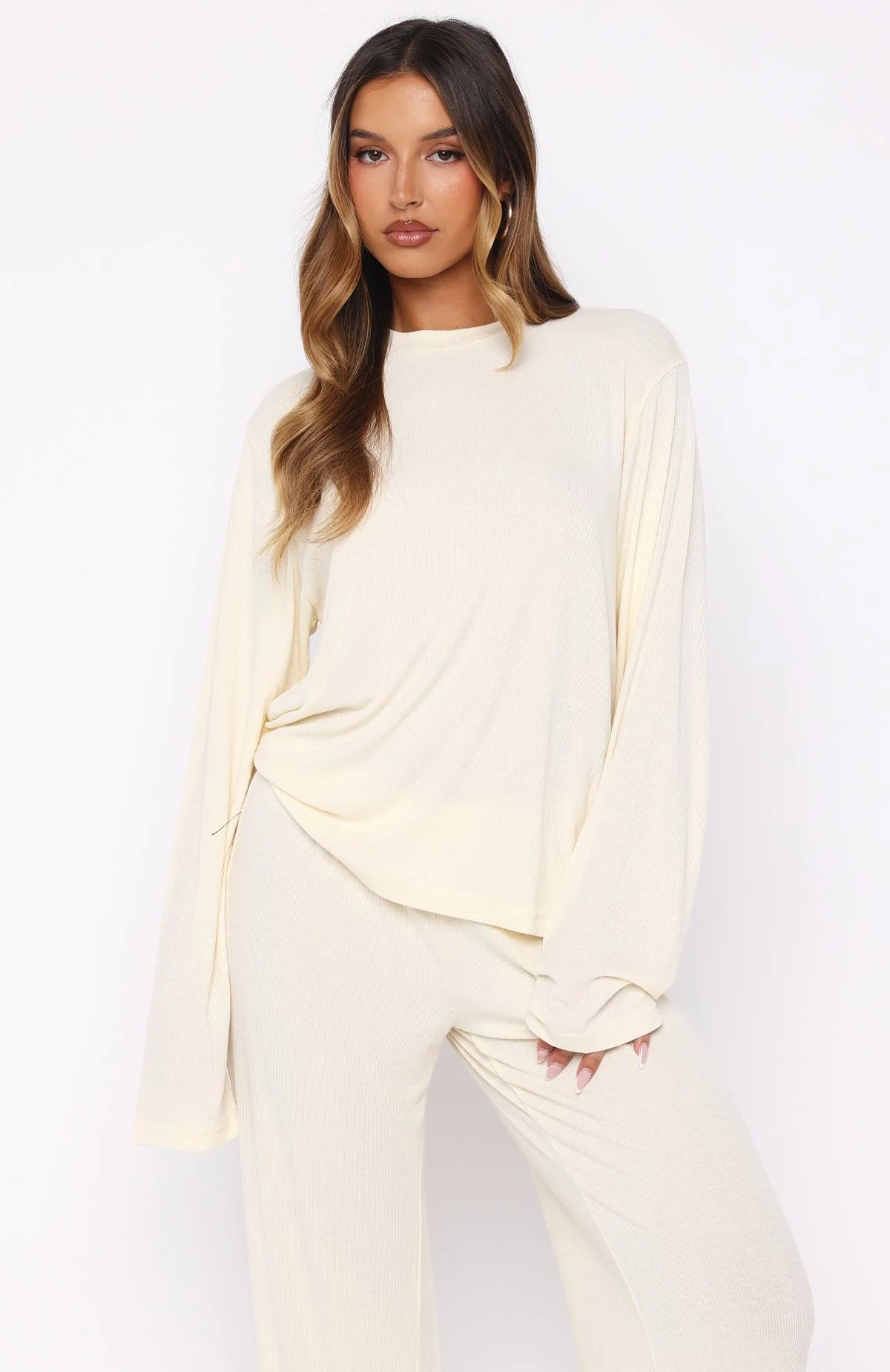 Life unedited the Wish Upon A Star Pyjama Long Sleeve Top in Off White! Featuring a classic crew neckline, slouched shoulders, long sleeves, and a relaxed silhouette. This top is crafted from the softest ribbed, high-stretch fabric you’ve ever felt. Style it with the matching Wish Upon A Star Pyjama Pants in Off White and your favourite slippers, then sit back, unwind, and drape yourself in pure comfort.